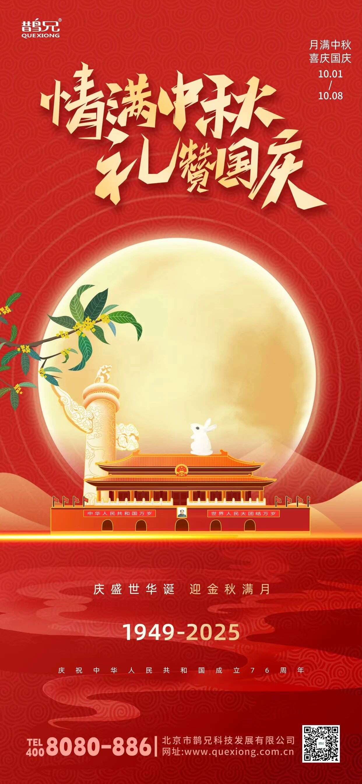 最后,鹊兄科技再次恭祝大家:中秋团圆乐,国庆喜洋洋!愿月光所照皆圆满,暖意所及皆安康,愿你与家人在双节里,享尽团圆之乐,共度喜乐时光!